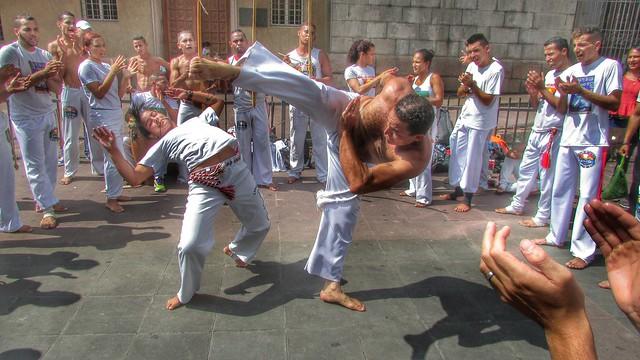 Capoeira is a martial art from Brazil that combines elements of self-defence, dance, acrobatics and music. It is known for its fast and complex movements that utilise strong energy and the power of acceleration disguised in the dance. In 2014, it was recognised as one of the intangible heritage arts by UNESCO.